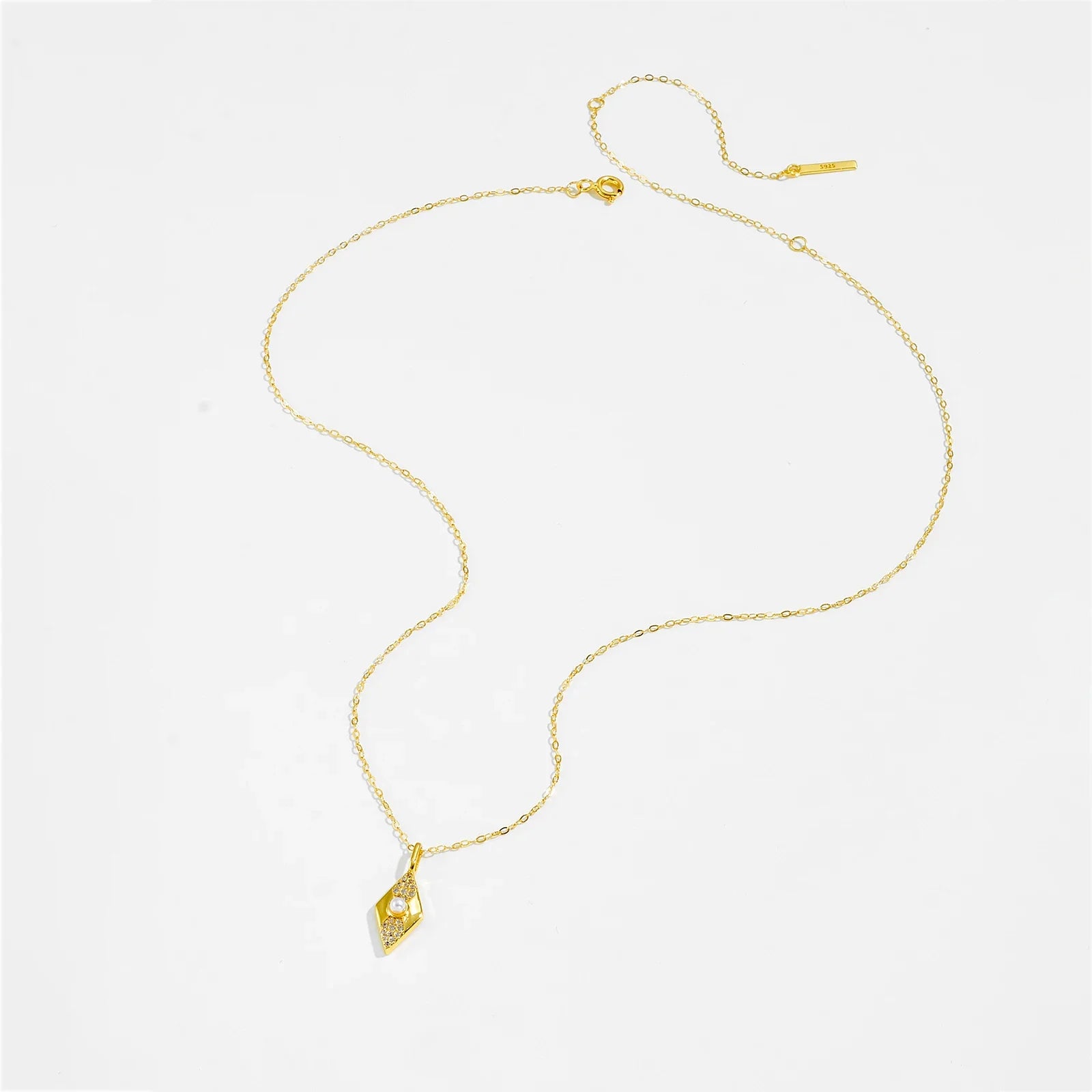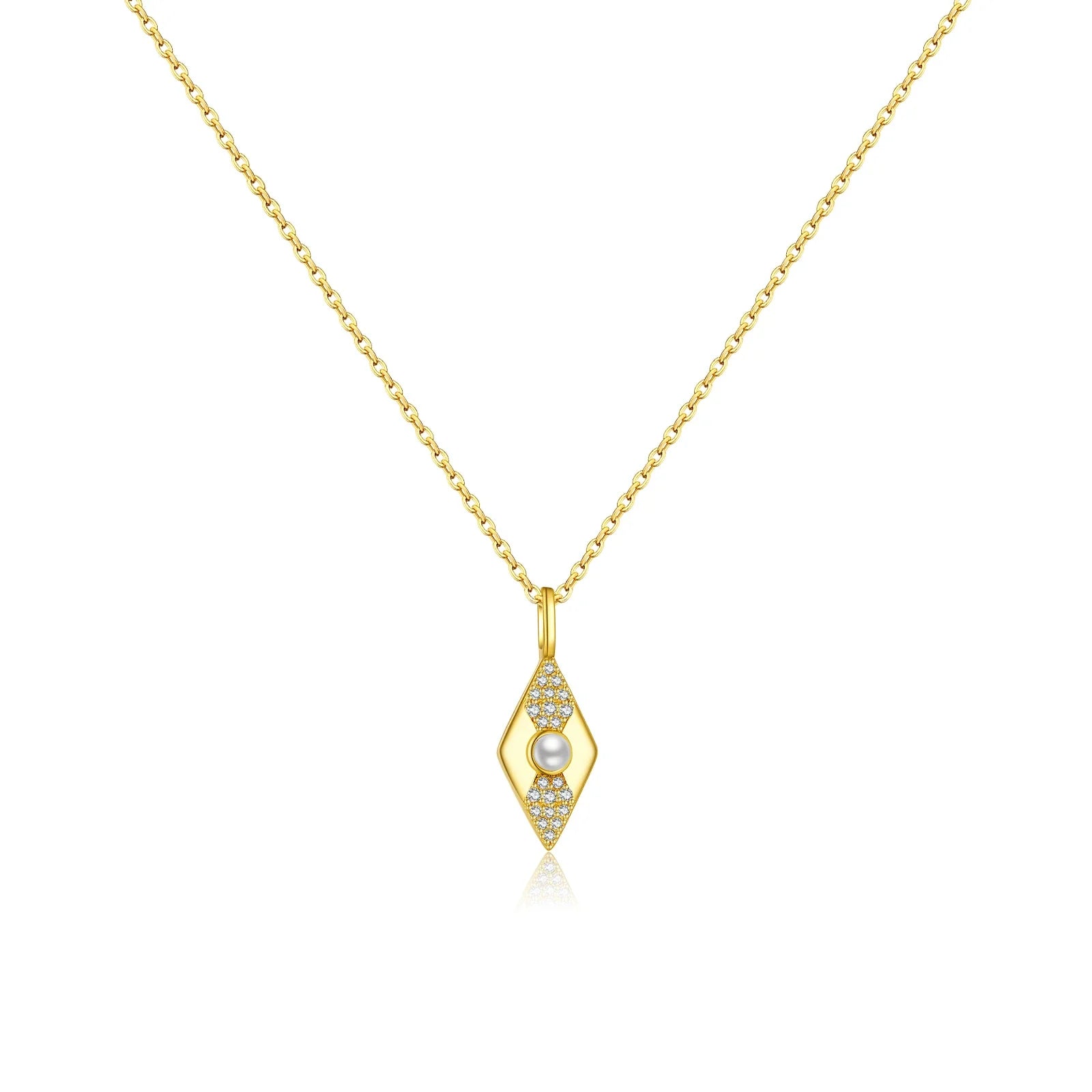 Rhombus Necklace with Freshwater Pearl – 925 Sterling Silver Geometric Pendant with Pearl & CZ Accents | Solvana