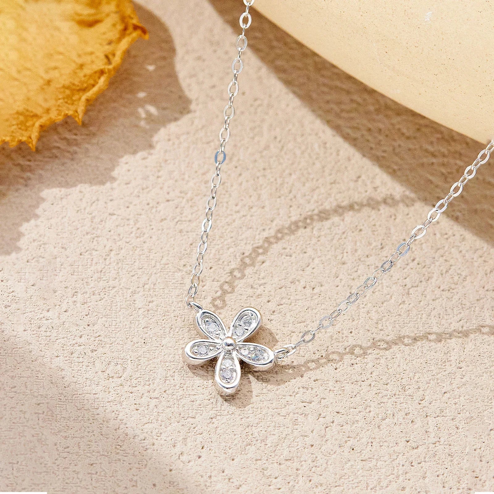 Whispering Petal Necklace – 925 Sterling Silver Bloom-Inspired 5A Zirconia Minimalist Jewellery | Solvana