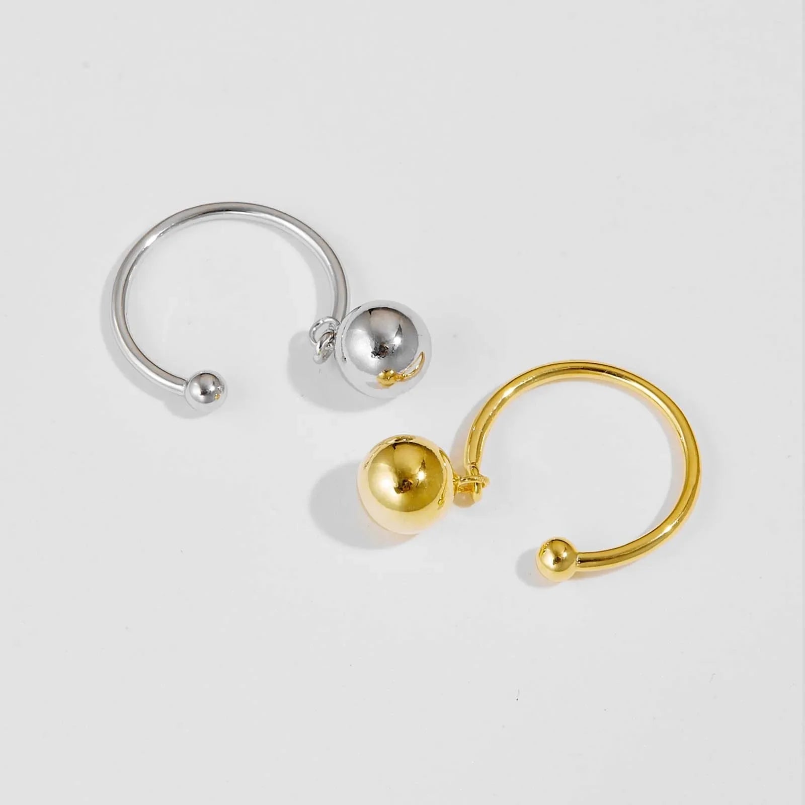 Golden Geometric Ring – 925 Sterling Silver Gold Plated Adjustable Hollow Bead Design | Solvana
