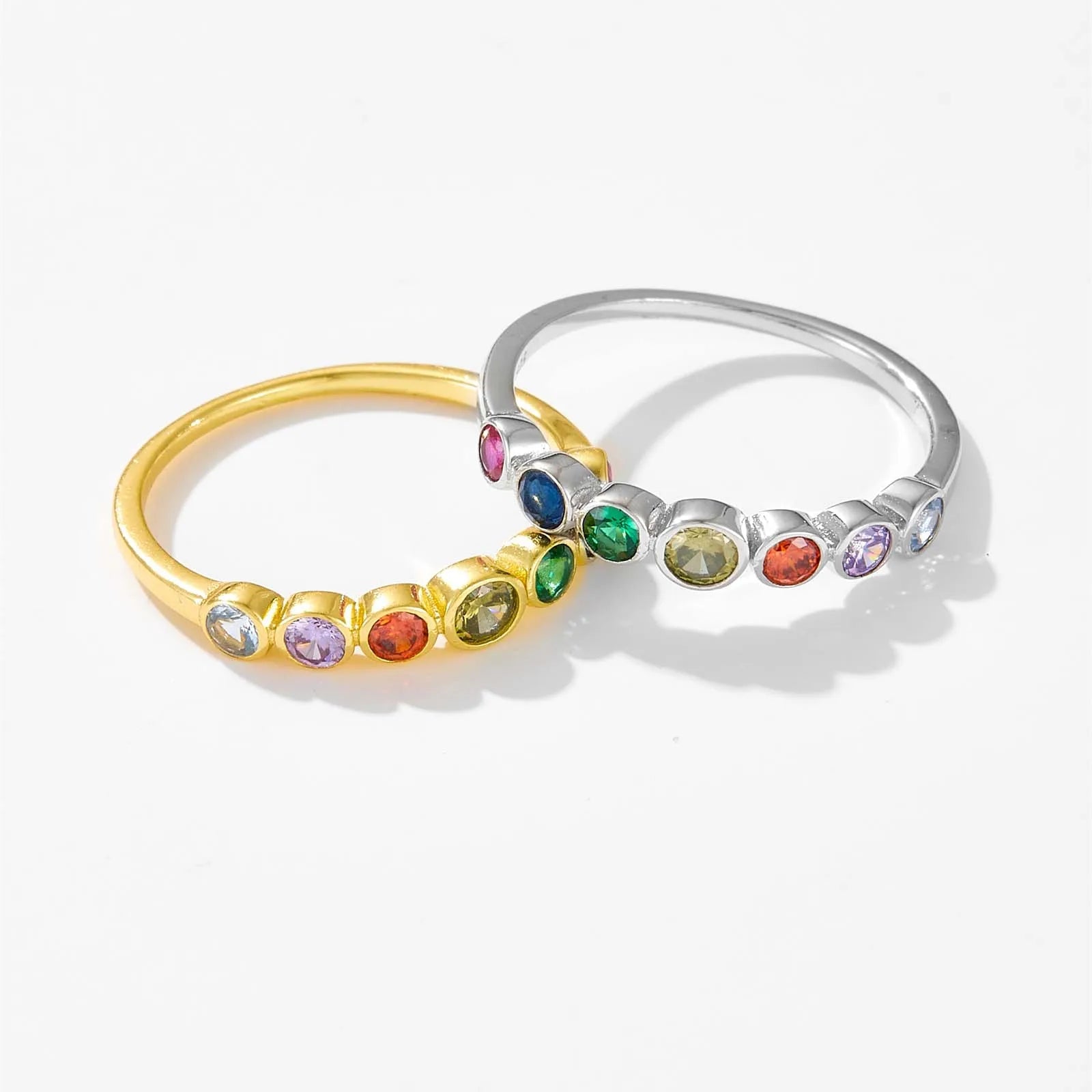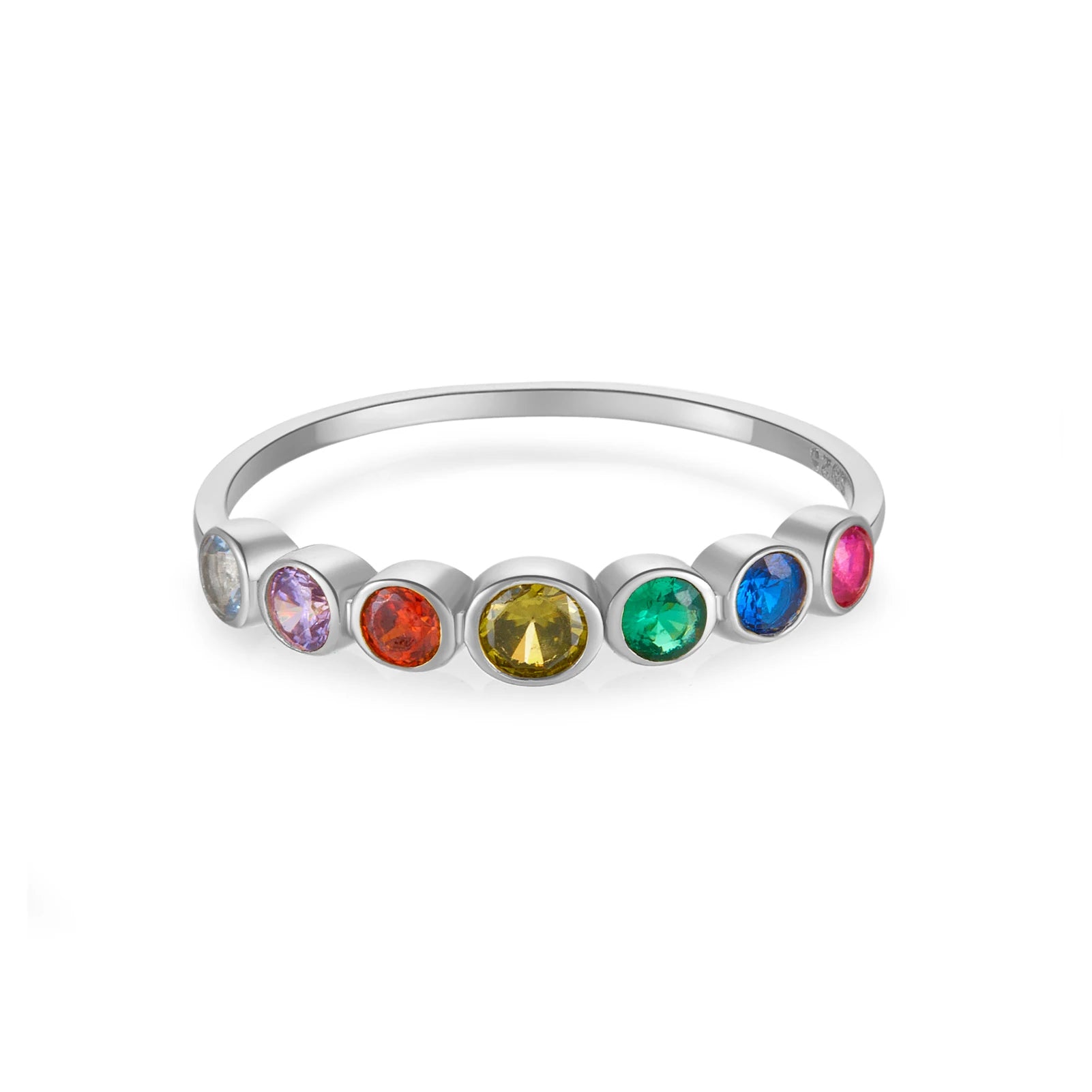 Rainbow cz (cubic zirconia) Circle Ring – 925 Sterling Silver Adjustable Colorful European-Inspired Jewelry | Solvana