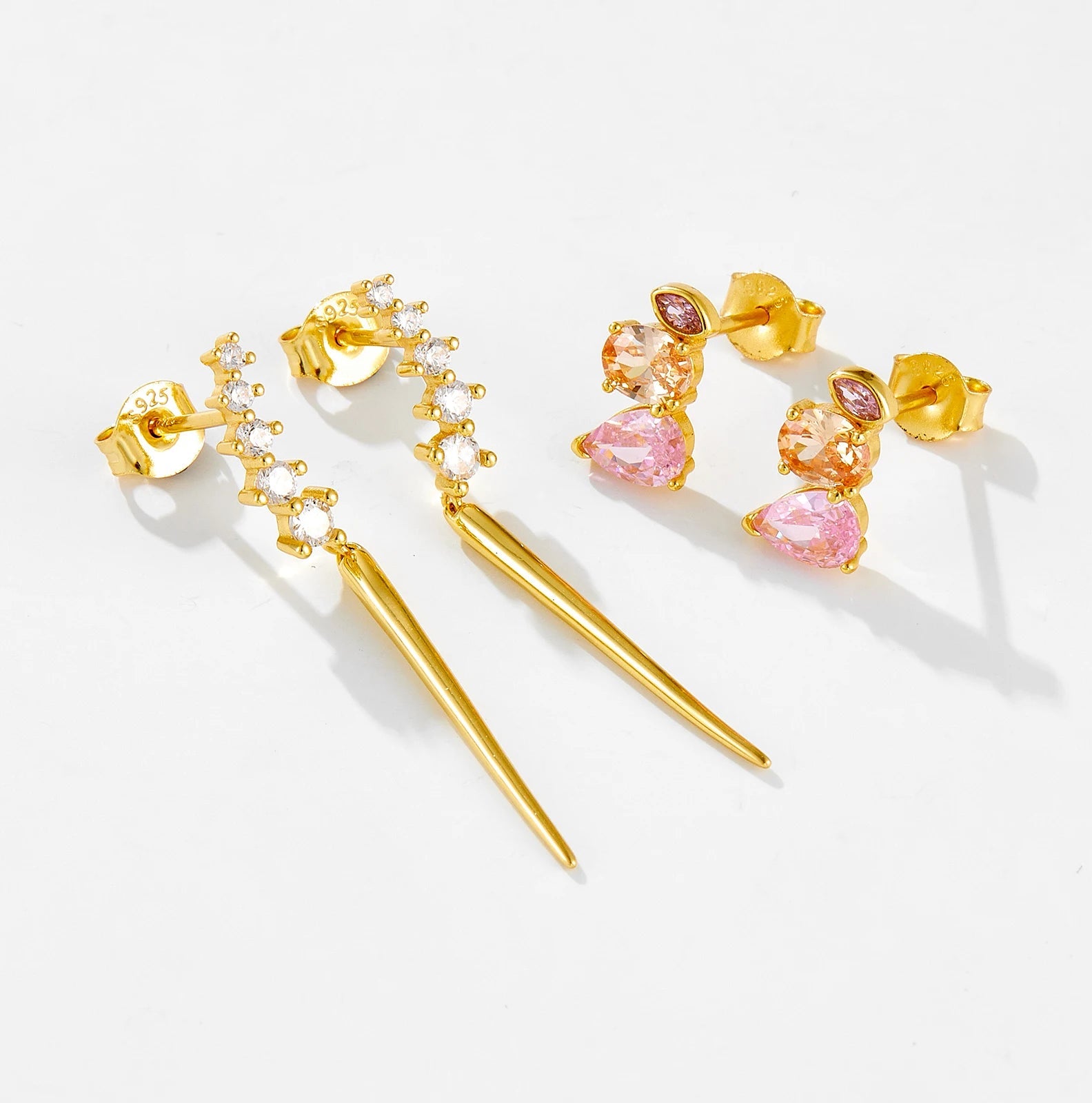 The Pink Champagne Zircon Studs are crafted to bring subtle sparkle with a touch of color. Made from premium 925 sterling silver, these earrings feature three dazzling pink champagne CZ zircon stones arranged in a refined stud design.