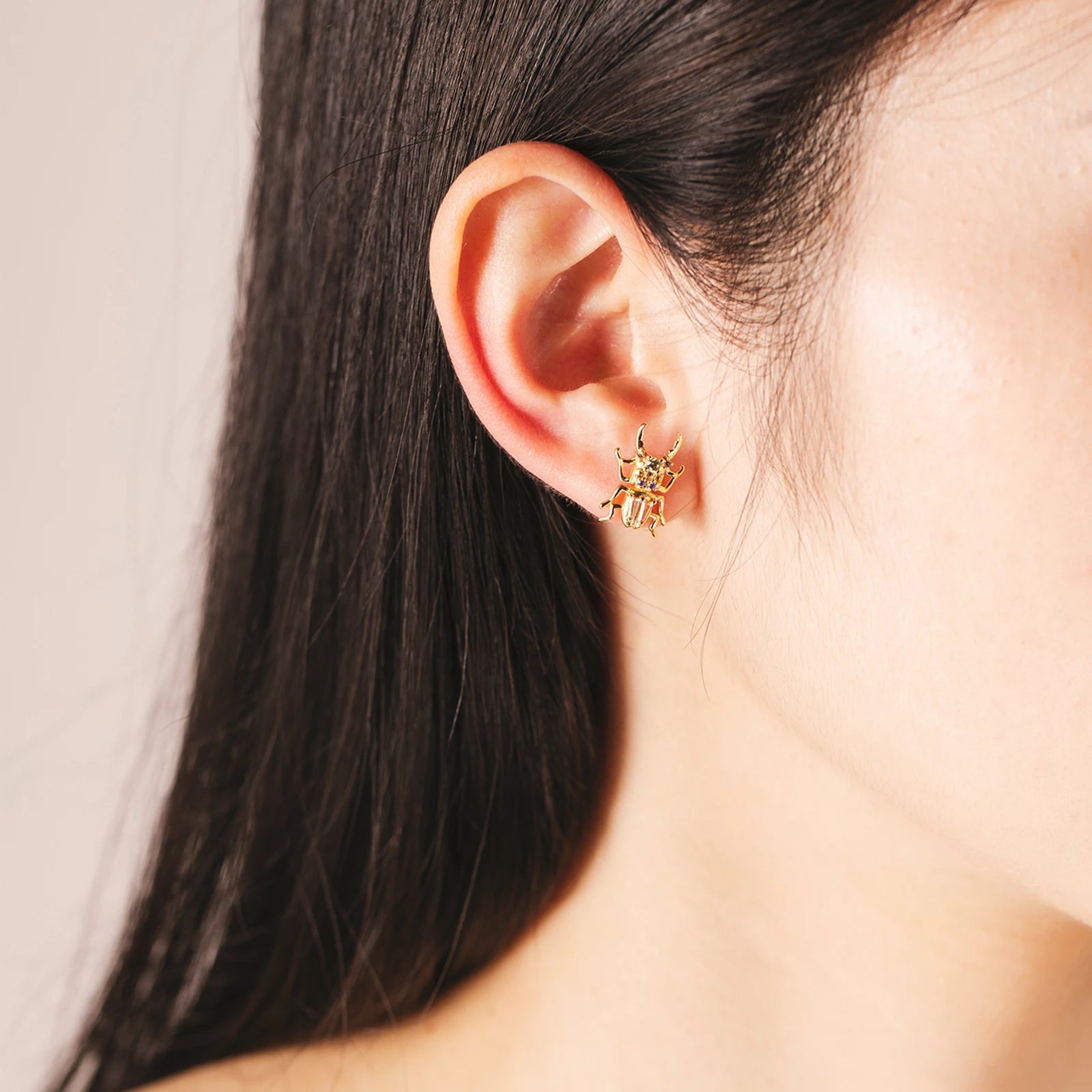 The Golden Courage Beetle Earrings combine bold symbolism with refined elegance. Crafted from high-quality 925 sterling silver and plated in radiant gold, these earrings feature a detailed beetle design accented with sparkling crystals for a luxurious finish.